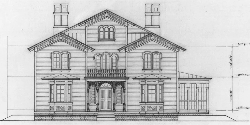 (Dunleath Mansion West Elevation: Image Provided by Historic Architecture Research. Project Records (UA110.041), Special Collections Research Center at NCSU Libraries.)